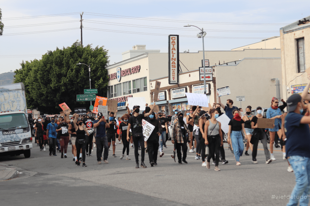 Cả đoàn hơn ngàn người, có đeo khẩu trang nha, đi từ chiều đến tối mà không có cửa hàng nào bị cướp, không có nơi nào bị phá hoại. Trực thăng, xe cảnh sát đi theo suốt hành trình.