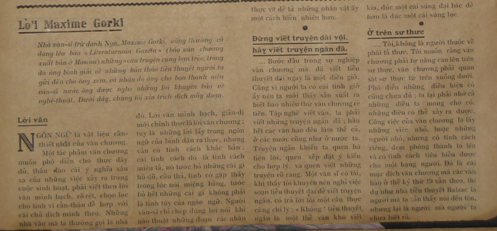 Ngày xửa ngày xưa khi chủ đề free-writing là đọc một bài của báo Phong Hóa và nêu suy nghĩ, mình đã bắt gặp mấy lời khuyên của hai ông nhà văn là J.J. Bernard và Maxime Gorki trên số 22 của tờ báo này (Link: www.shorturl.at/mvBGK, trang 17). Thích thú quá mình viết thành bài tóm tắt có pha chút cảm nhận cá nhân, được chị Phiên khuyến khích mình chỉnh chỉnh sửa sửa, nay post lên khoe khoang với đại chúng group Viết để mọi người cùng đọc chung mấy lời khuyên cho dui. Hôm nay mình post bài về ông Maxime Gorki trước, mai mình sẽ post bài về ông J.J. Bernard nha.