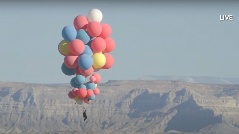 Đây không phải là một hình ghép hay trong phim, đây là ảnh chụp David Blaine bay lên trời cùng chùm bong bóng khổng lồ trong dự án “Ascension” mới hôm qua ở Arizona. David đã lên tới chiều cao của một máy bay thương mại và nhảy dù xuống sa mạc. Hãy thử tưởng tượng bạn đang bay ngang Arizona, nhìn qua cửa sổ máy bay và thấy anh ấy vẫy tay chào bên dưới chùm bóng rực rỡ màu sắc! Bạn có tin không?