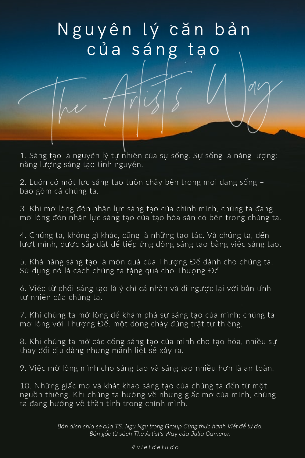 Bản dịch chia sẻ của TS. Ngu Ngu đóng góp trong Group Cùng thực hành Viết để tự do. Bản gốc từ sách The Artist’s Way của Julia Cameron. Xin đừng copy!