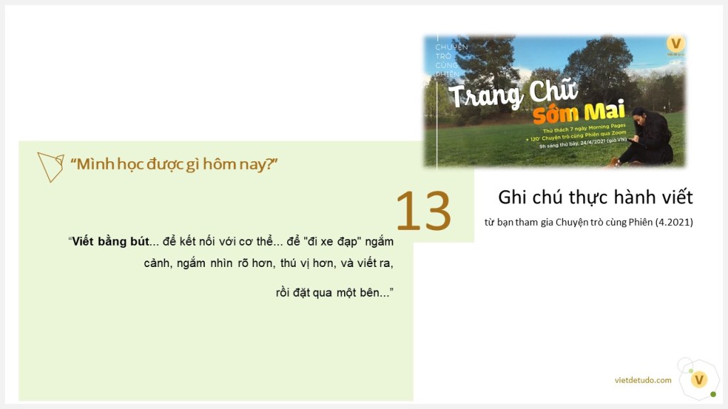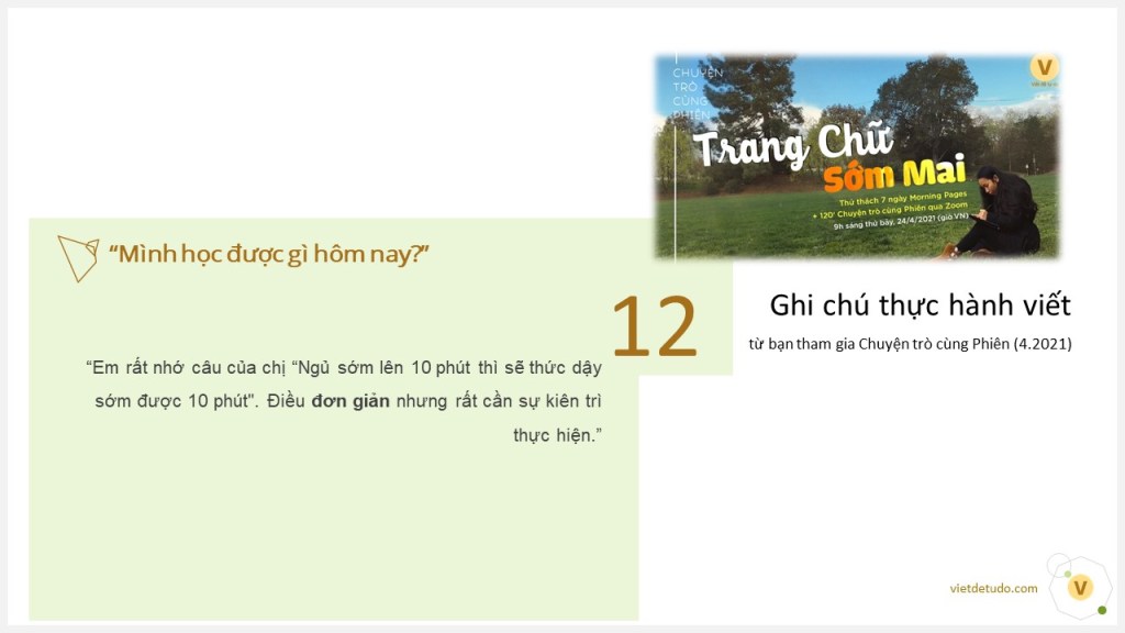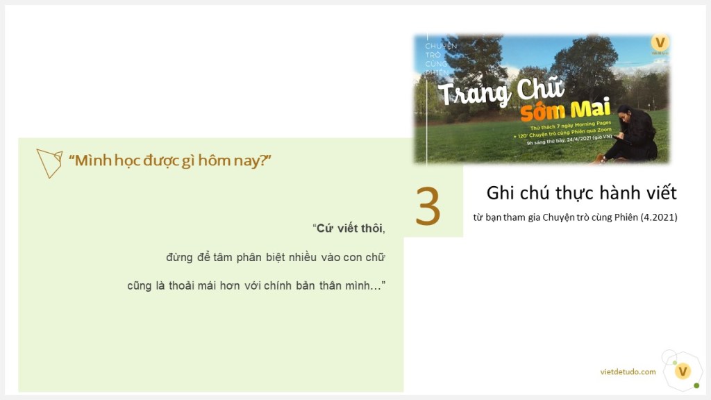 Thương chúc bạn bao dung, bền bỉ với 3 Trang Chữ Sớm Mai mỗi ngày, và lắng nghe những gì trang viết muốn trò chuyện cùng bạn, rồi take action.