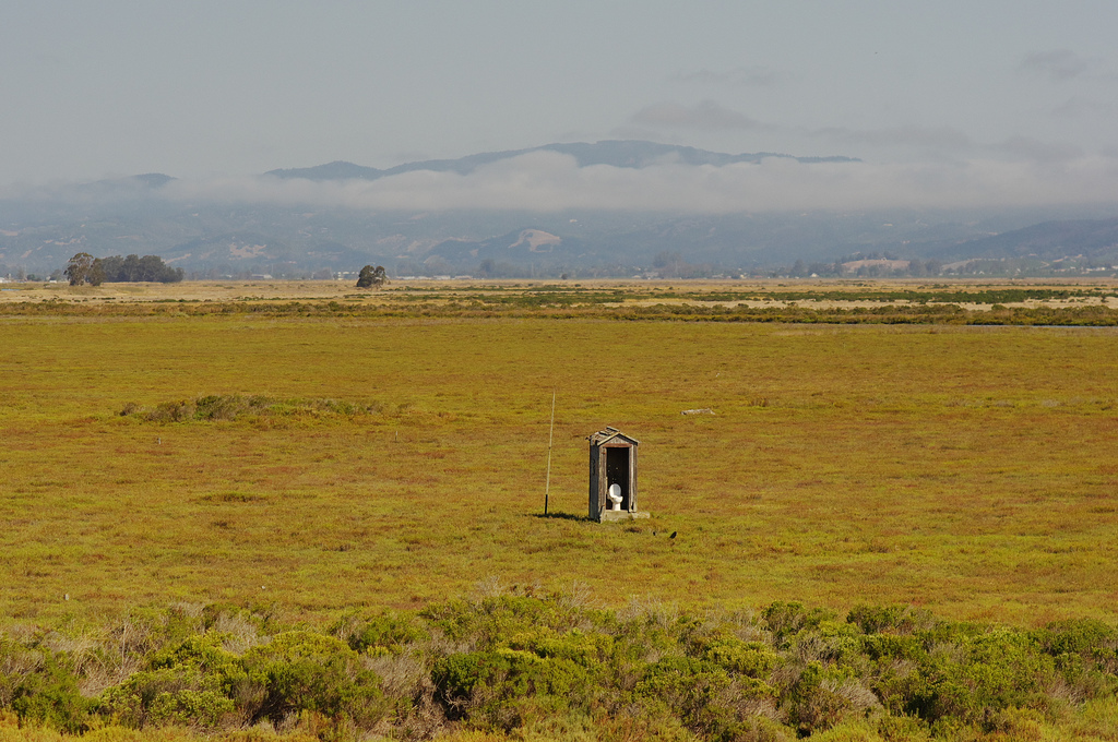 Trên Google Map, em nó tên là The Lone Toilet. Mình gặp em khi xe đổ dốc cầu Highway 37 đi Vallejo. Chiếc bồn cầu trơ trọi giữa mênh mông đầm lầy tàn tích thị trấn cũ, nhợt nhạt màu trắng sứ quen. Căn phòng gỗ xập xệ giữa đồng cỏ lau mùa ít mưa, ngột ngạt màu cây loang xám.