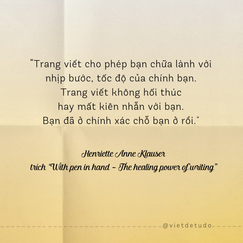 “Trang viết cho phép bạn chữa lành với nhịp bước, tốc độ của chính bạn. Trang viết không hối thúc hay mất kiên nhẫn với bạn. Bạn đã ở chính xác chỗ bạn ở rồi.”