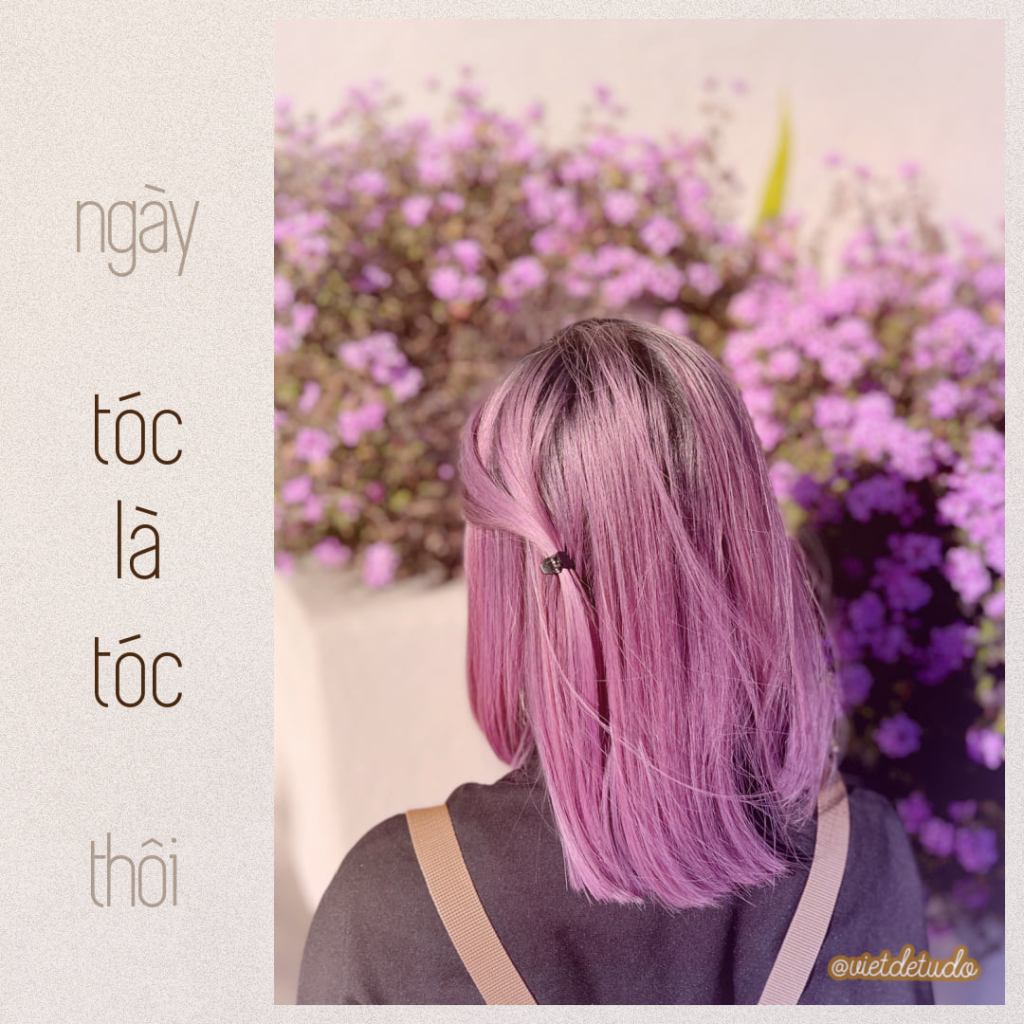 Mình mừng vui vì đã đi qua định kiến được nghe từ lâu, rằng “Con gái tóc xanh tóc đỏ là đồ ăn chơi hư hỏng”, mình thử một màu tóc rực rỡ hơn bao giờ hết và mình vẫn là mình. Chị bảo, “chưa từng thấy ai nhuộm tóc màu này mà mặt vẫn lành như em”, vì mình vẫn là mình, và tóc là tóc thôi.