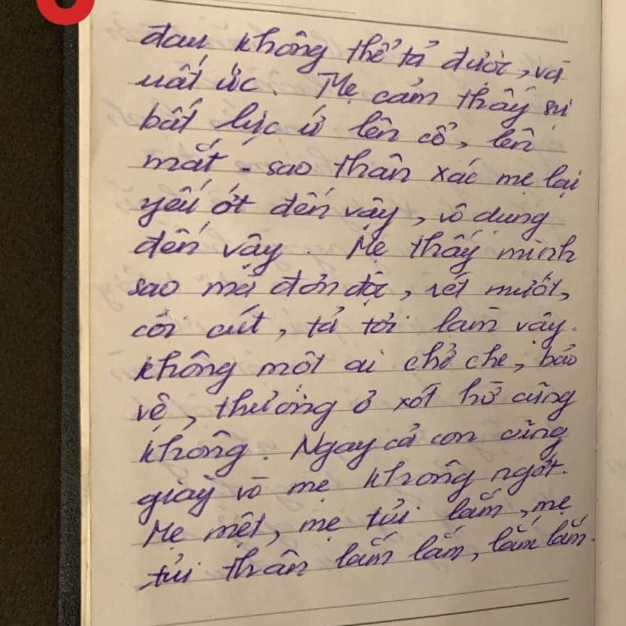 Những dòng trong nhật ký là những dòng chị viết cho đứa con đã mất vì phá thai sau vụ việc đau lòng. Tuổi 25 của chị ngập trong nỗi đau thể xác và tinh thần, có quyển sổ làm chứng.