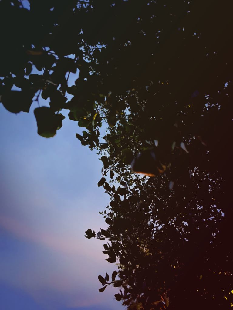 Gió nổi bất thần, đám lá quét quét trên đầu lột rột như ai đó mạnh tay soạn đồ trong tủ gỗ. Mùi hương từ cây tỏa ra ôm lấy cái tịch mịch, rồi tan lẫn vào đêm. Bọn côn trùng vầy một vòng tròn lớn bên tai phải. Chợt thấy ngột ngạt một nỗi sợ mơ hồ trong gene loài người, bóng tối ngồn ngộn ở phía hàng cây phía xa mình không thấy, bóng tối đang bao quanh mình. Trơ trọi.