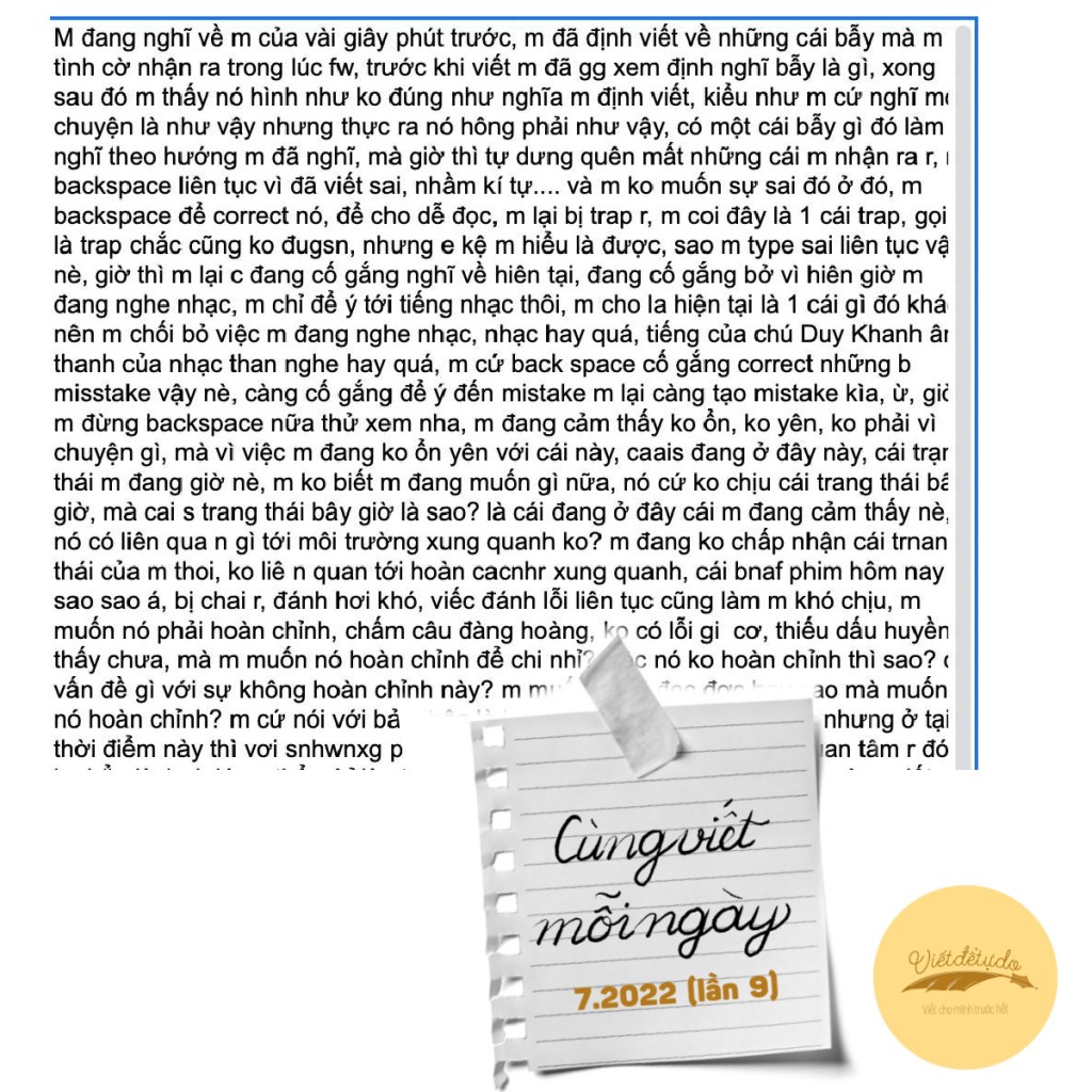 Bạn chơi cùng hong? Thực tập Freewriting hiểu bản thân nhưng lại viết cùng người khác ư? Hihihi… Làm liền nha, để tháng 7 trôi qua vẫn có điều chi ở lại với mình, trên trang viết ![]()