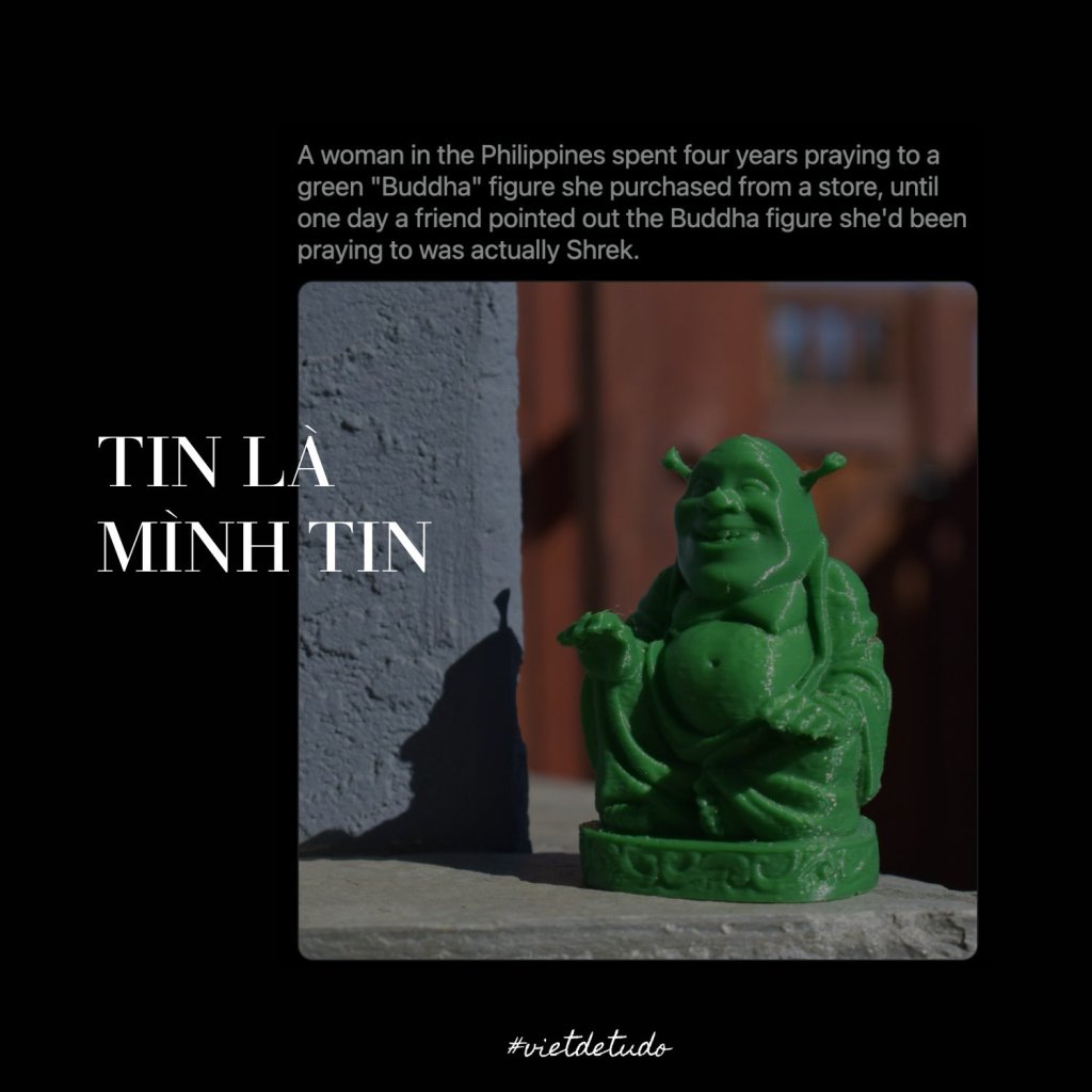 Một người phụ nữ ở Philippines cầu nguyện với tượng “Phật” mua ngoài tiệm, đến một ngày cổ mới biết đó là tượng Shrek – nhân vật hoạt hình của Dreamworks.