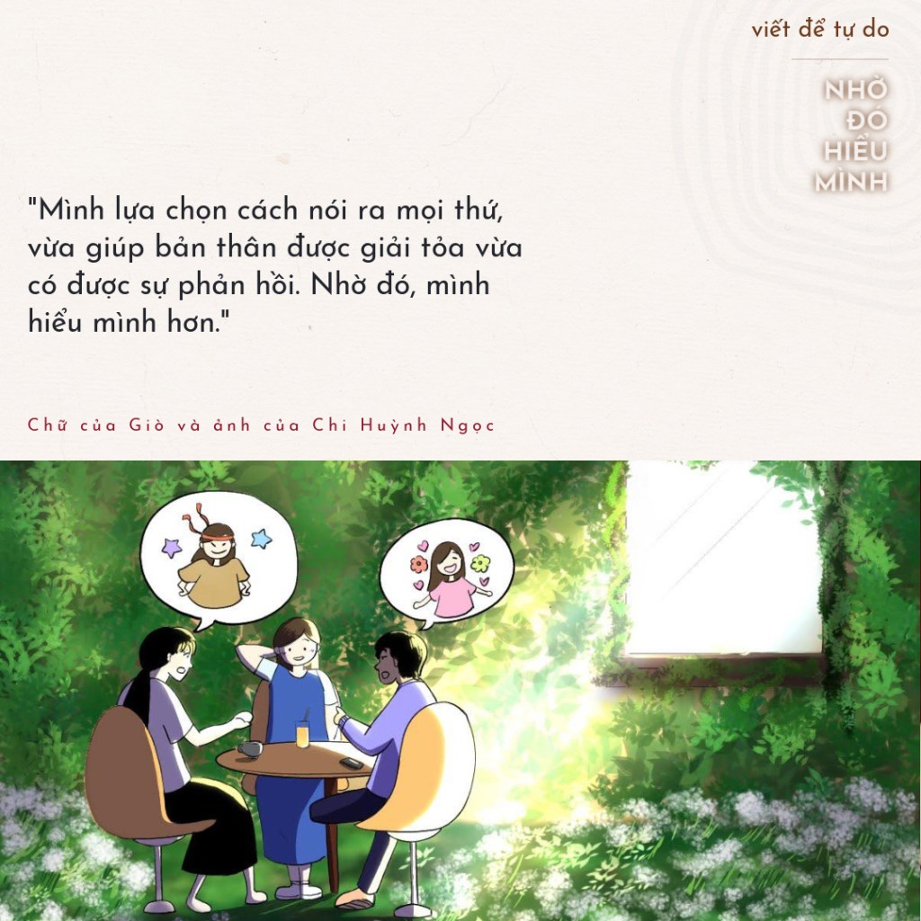 Thời gian trôi qua, mình nhận ra mỗi ngày mình lớn hơn rất nhiều, lớn về tinh thần và mập hơn về thể xác, nhưng cũng nhận ra bản thân nhỏ bé khi phải ôm đồm nhiều thứ bên trong. Nếu cứ giữ mãi những tiêu cực thì mình sẽ nổ tung mất, nên mình lựa chọn cách nói ra mọi thứ, vừa giúp bản thân được giải tỏa vừa có được sự phản hồi. Nhờ đó, mình hiểu mình hơn.