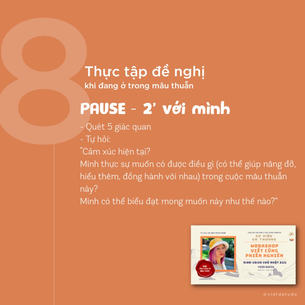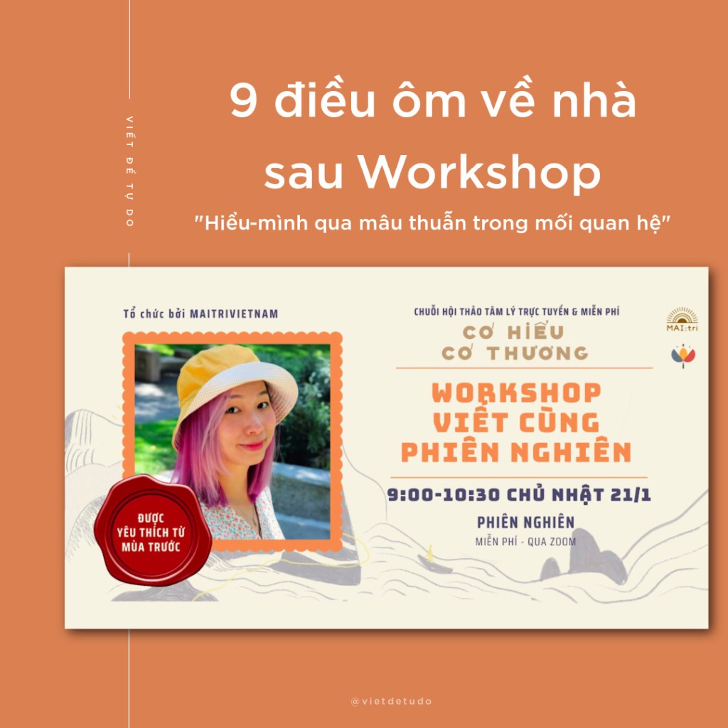 Thương gởi tặng bạn 9 điều ôm về nhà sau Workshop “Hiểu-mình qua mâu thuẫn trong mối quan hệ”, với mong muốn bạn có thể tiếp tục tự thực tập quan sát bản thân thông qua Freewriting.