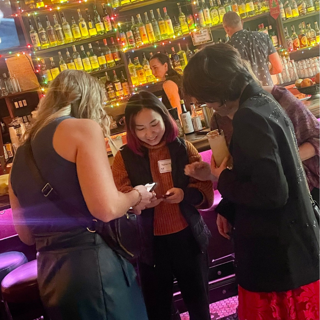 Mình đã mở mắt thiệt nhiều khi đi gặp mọi người in-person. Mỗi tháng hội ngộ ở các workshop online hay lớp CCE cũng là một kiểu không khí, nhưng ở đây, giữa bar ấm cúng khu Nob Hill này, lại là một kiểu khác.