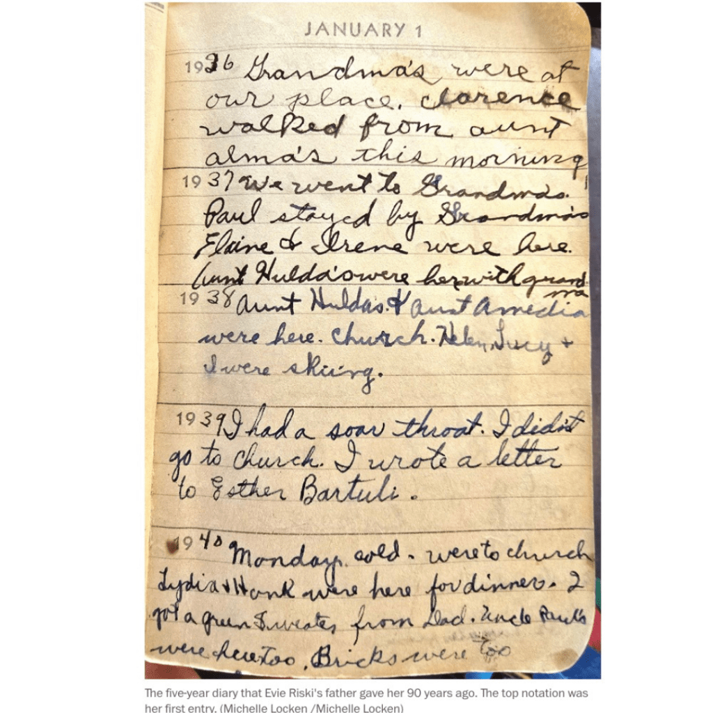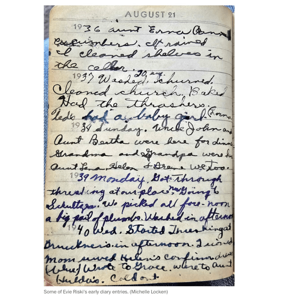 Tôi đã dừng lại rất lâu khi đọc về Evie Riski, người phụ nữ 100 tuổi ở North Dakota giữ thói quen viết Journaling suốt 90 năm. Bà nói, “No excuse for me not to.”
