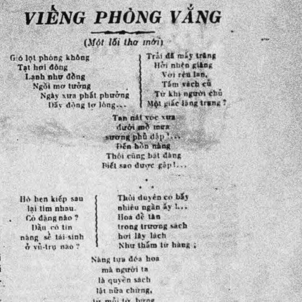 Viếng Phòng Vắng là một trong số chục bài hiếm hoi, được đăng trên Phụ Nữ Tân Văn số Xuân 1933. Mấy câu này làm nao lòng quá: