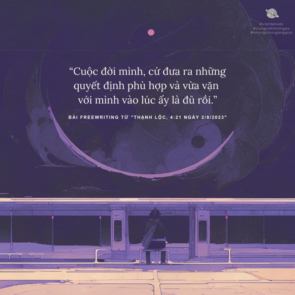 Cuộc đời mình, cứ đưa ra những quyết định phù hợp và vừa vặn với mình vào lúc ấy là đủ rồi. Những phút giây sau đó, cứ phút nào tới giây nào tới thì cứ sống với phút ấy giây ấy trọn vẹn là được. Lắng lo nhiều quá làm gì. Ngay cả câu nói vừa rồi cũng có những tương đối của nó, quá khứ – hiện tại – tương lai có những tương đối của nó mà.