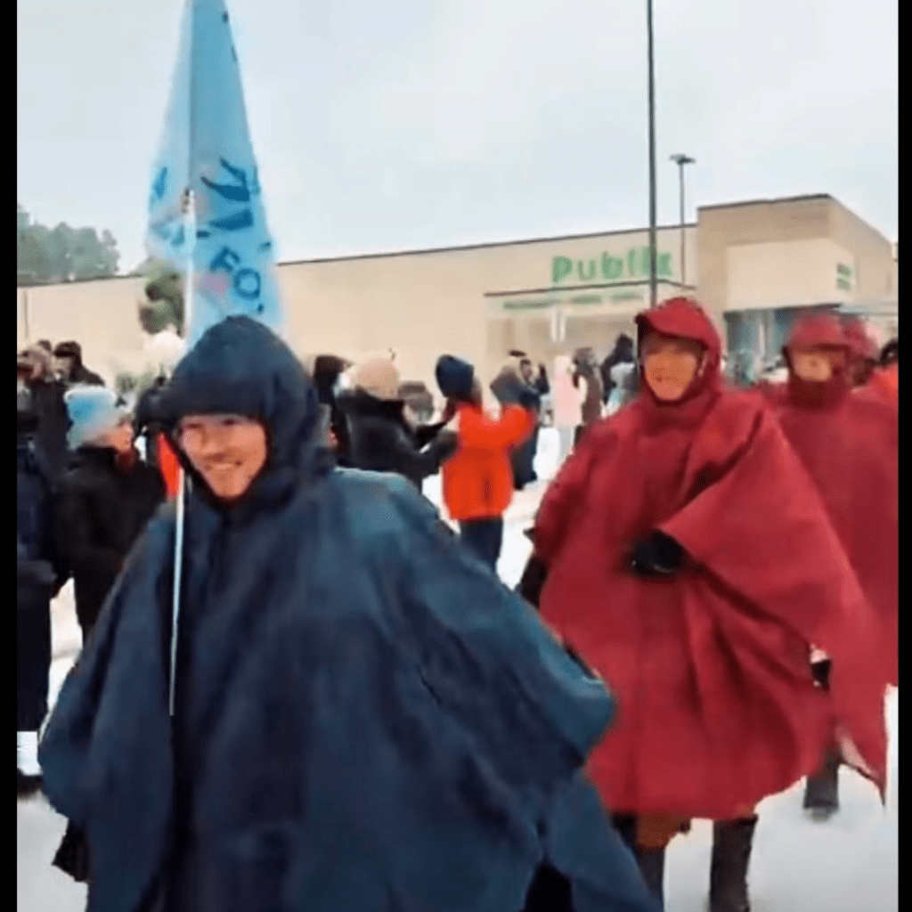 Bất chấp bão tuyết, người dân vẫn hiện diện bên vệ đường. Những gương mặt rạng ngời xuyên qua bức màn tuyết trắng xóa – họ mỉm cười, họ chào đón, họ trao gửi tất cả những gì có thể.