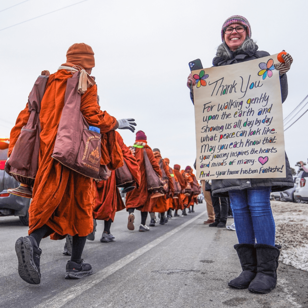 Tôi không chỉ từng thấy nhiều hình ảnh các nhà sư đi bộ vì hòa bình mà còn tham gia cùng những người từ tu viện Phật giáo gần quê nhà của tôi. Họ tổ chức những cuộc đi bộ định kỳ mà không gây ra bất kỳ sự ồn ào nào, đi bộ qua nhiều thị trấn mà hầu như không ai hay biết.