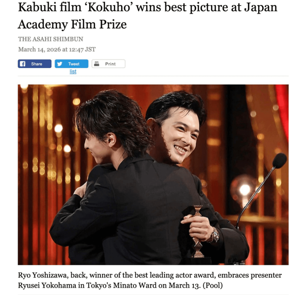 Vài giờ trước, KOKUHO giành giải Phim hay nhất tại Giải thưởng Điện ảnh Viện Hàn lâm Nhật Bản. Vài ngày trước, tôi xem Kokuho ở khu Japantown của San Francisco – cộng đồng người Nhật lâu đời nhất và lớn nhất nước Mỹ. Xung quanh da trắng, da vàng, da đen đủ cả. Xem xong ai cũng xuýt xoa “Phim đẹp quá!”