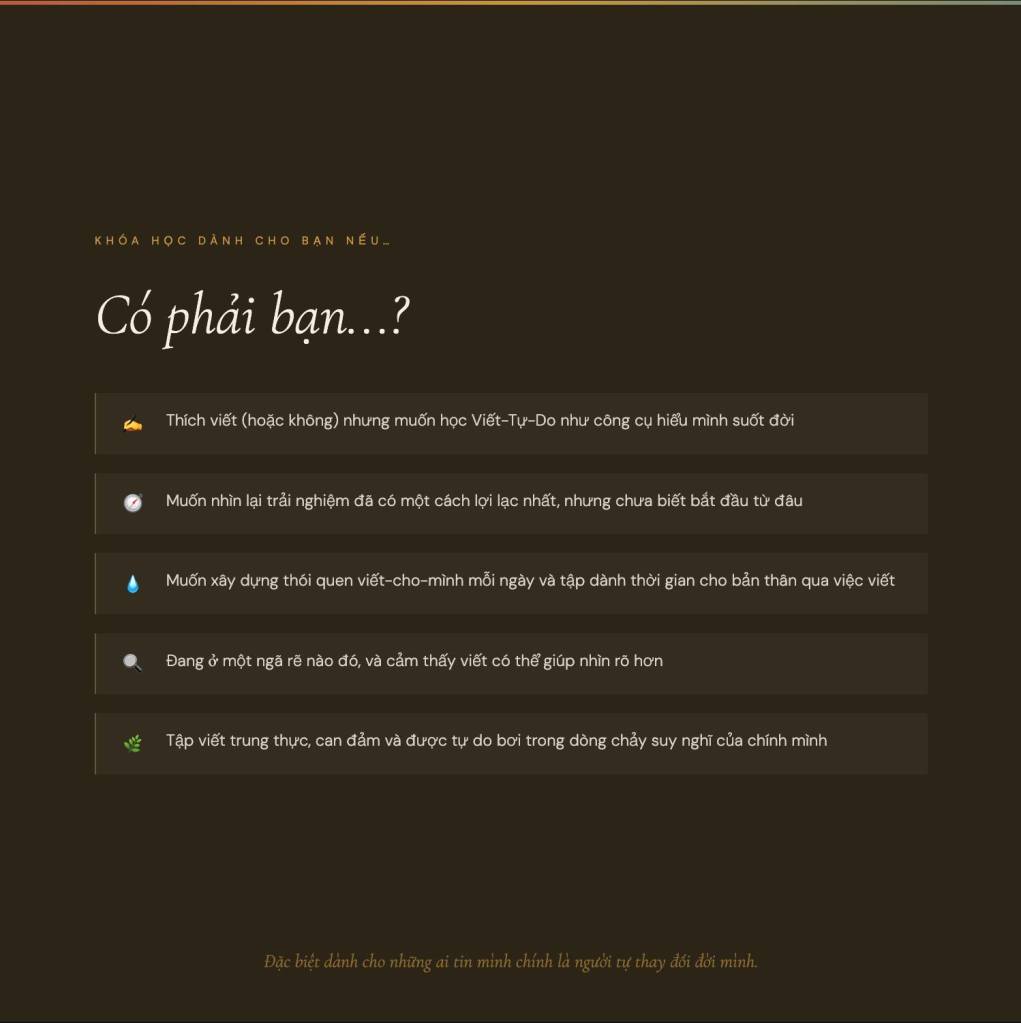 Lưu ý: Tất cả thành viên nhóm Viết Để Tự Do cùng Phiên Nghiên được nhận Học bổng 1 triệu VND khi đăng ký trước 15/4/2026.