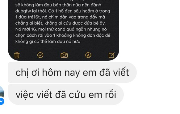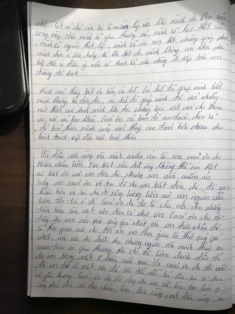 “Khi chấp nhận đối diện, cho phép mình được tổn thương để viết xuống, em thấy lòng mình được xoa dịu và vỗ về, những cảm xúc suy nghĩ ứ đọng đó phần nào được khai thông…”