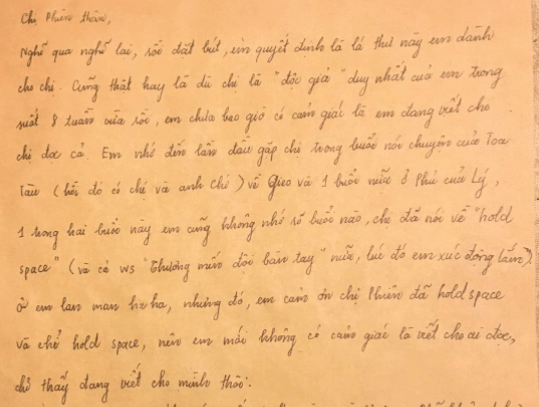 “Viết tự do đã dẫn dắt tôi mở dần các cánh cửa trong lòng tôi. Lắng nghe là chuyện không dễ dàng. Tôi cần học cách lắng nghe sâu, nhất là lắng nghe chính mình.”