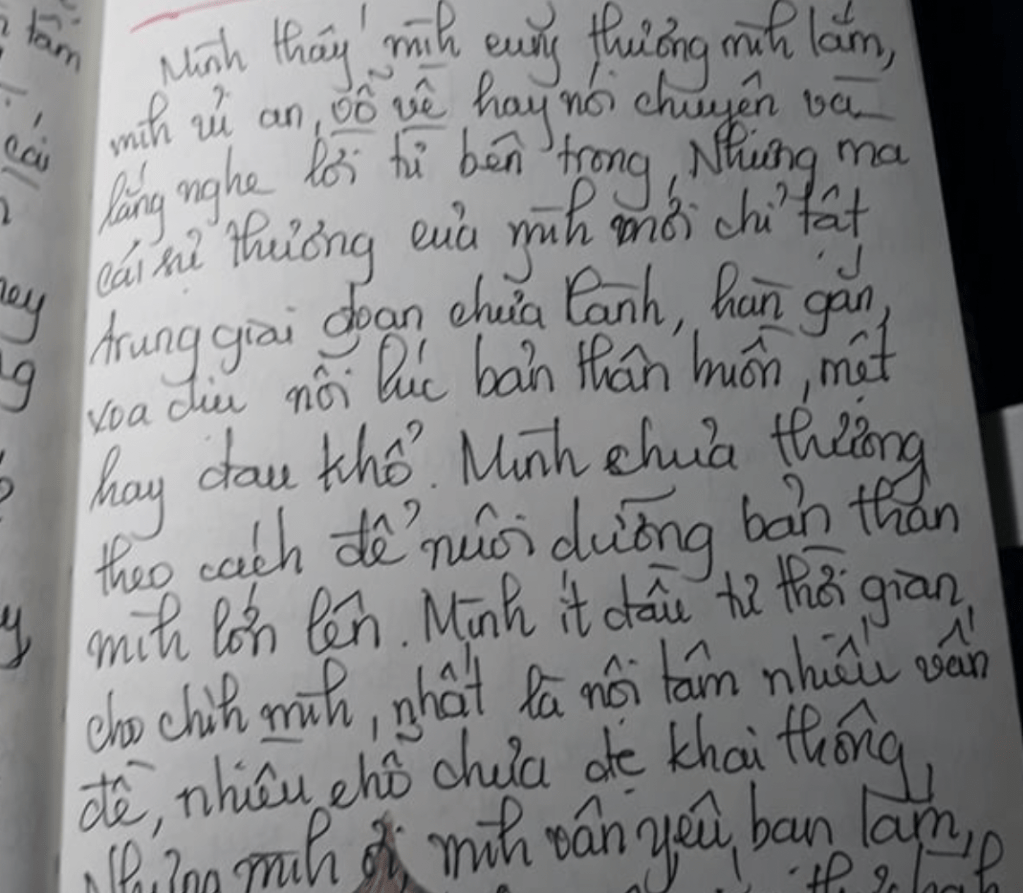 “Chưa bao giờ mình cảm ơn mình vì điều gì cả. Chỉ biết cố gắng về phía trước mà bỏ quên mình. Khi viết ra được những lời cảm ơn mình thì mình càng thấy trân quý mình hơn…“