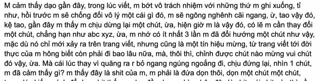 “Có lẽ bây giờ là lúc em bắt đầu cảm thấy không viết còn khó hơn cố gắng viết mỗi ngày. Freewriting hay lắm, em sẽ tìm thấy chính mình và cảm nhận được rằng mình bị điều gì ám ảnh và cả ám thị nữa…”